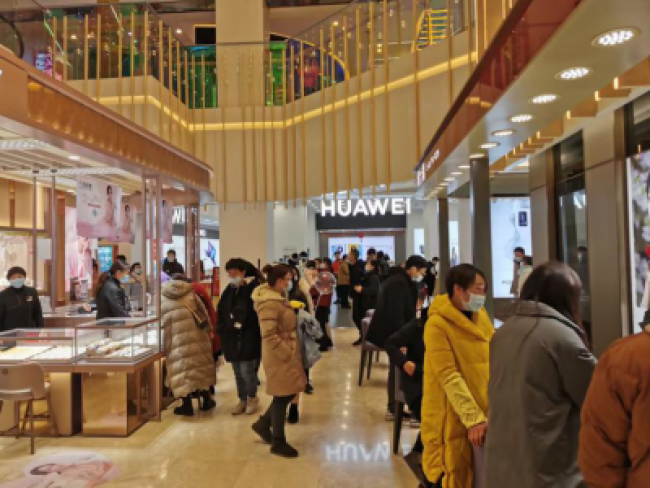元旦期间,江汉路步行街区内各商家紧抓节日消费黄金期,推出了丰富多彩的促销活动,大洋百货、中心百货等商场围绕“跨年”、元旦、周年庆等主题活动,纷纷推出打折、满减、抽奖、抵用券、多倍积分等优惠,营造浓郁节日气氛,吸睛又吸金。