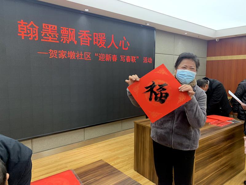 在近三个小时的活动中,现场洋溢着新年的喜庆气氛。活动结束后,社区工作人员带上刚写好的春联给辖区养老院和空巢老人们送去。空巢老人陈阿姨接到社区送给她的春联后,高兴地说:“家里正好缺少对联,本来是打算出去买的,现在好了,社区将对联亲自送上门,同时也将福气送到了我们家。”