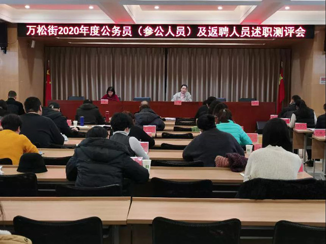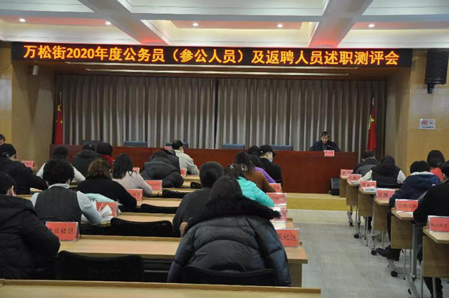 1月25日,万松街道组织召开2020年度公务员(参公人员)及返聘人员述职测评会。街工委副书记杜杨主持会议,街机关全体公务员、综合执法中心工作人员、机关返聘人员及社区书记等参加会议。