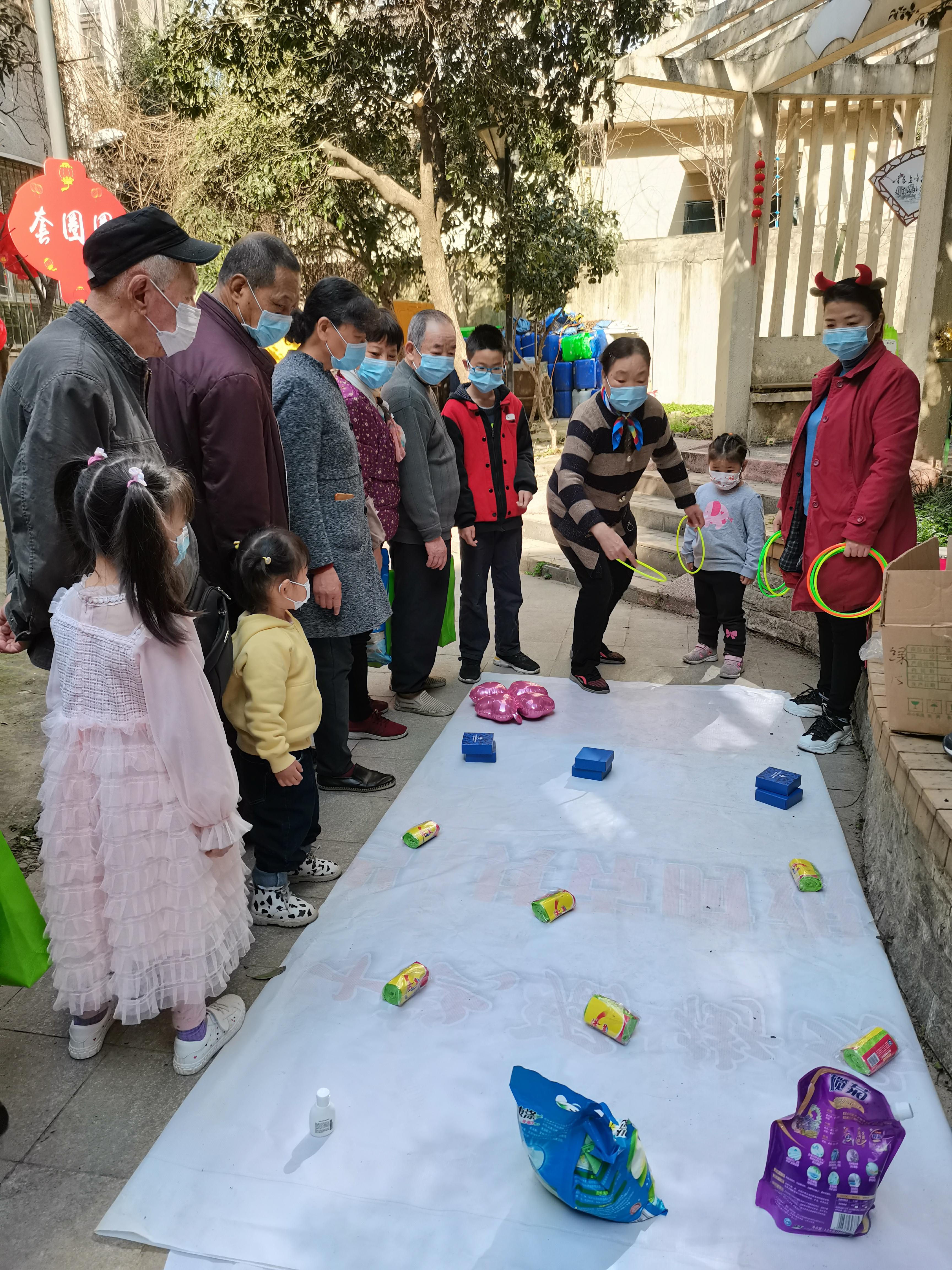 前来参加活动的居民越来越多,大家穿梭在一个个灯谜下,你一言我一语的讨论着,猜中了的居民兴奋的拿着谜底跑去兑换奖品,夹汤圆和套圈圈的项目也热闹非凡,参加活动的有90多岁的老党员也有三四岁的孩童,大家在工作人员的引导下,有序的参与活动,获胜的居民抱着“战利品”激动的为别人加油喝彩,大家脸上洋溢着幸福的笑容,现场一片欢呼声。