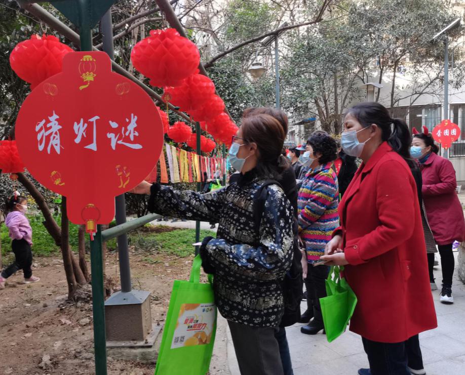 在社区工作人员及志愿者提前一天的布置下,小游园漂亮极了,刚刚发芽的树枝、盛开的油菜花、处处挂满的大红灯笼、亮闪闪的彩带、五颜六色的灯谜及用彩色气球装饰的拱形花门,在春日的暖阳照耀下,一片春意盎然,为此次的游园会增添了更多风采。