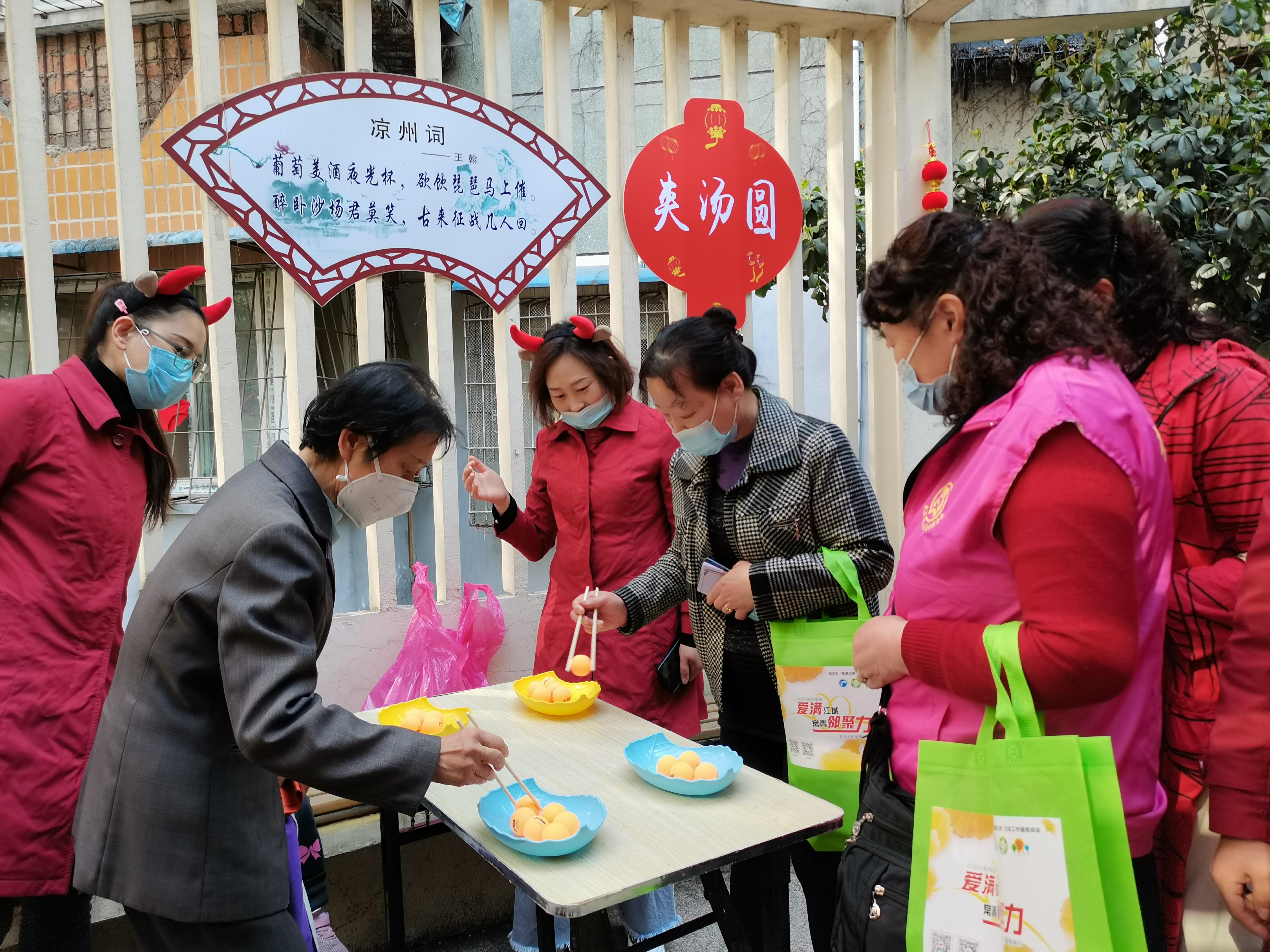 “喜乐元宵游园会”在腰鼓队成员欢快的音乐中拉开帷幕,现场锣鼓喧天,居民们有序领取抽奖号码并排队入园,在社区书记郭丹丽热情激扬的致词之后,游园会正式开始,此次活动有夹汤圆、做花灯、套圈圈、猜灯谜、爱环保五个小游戏。