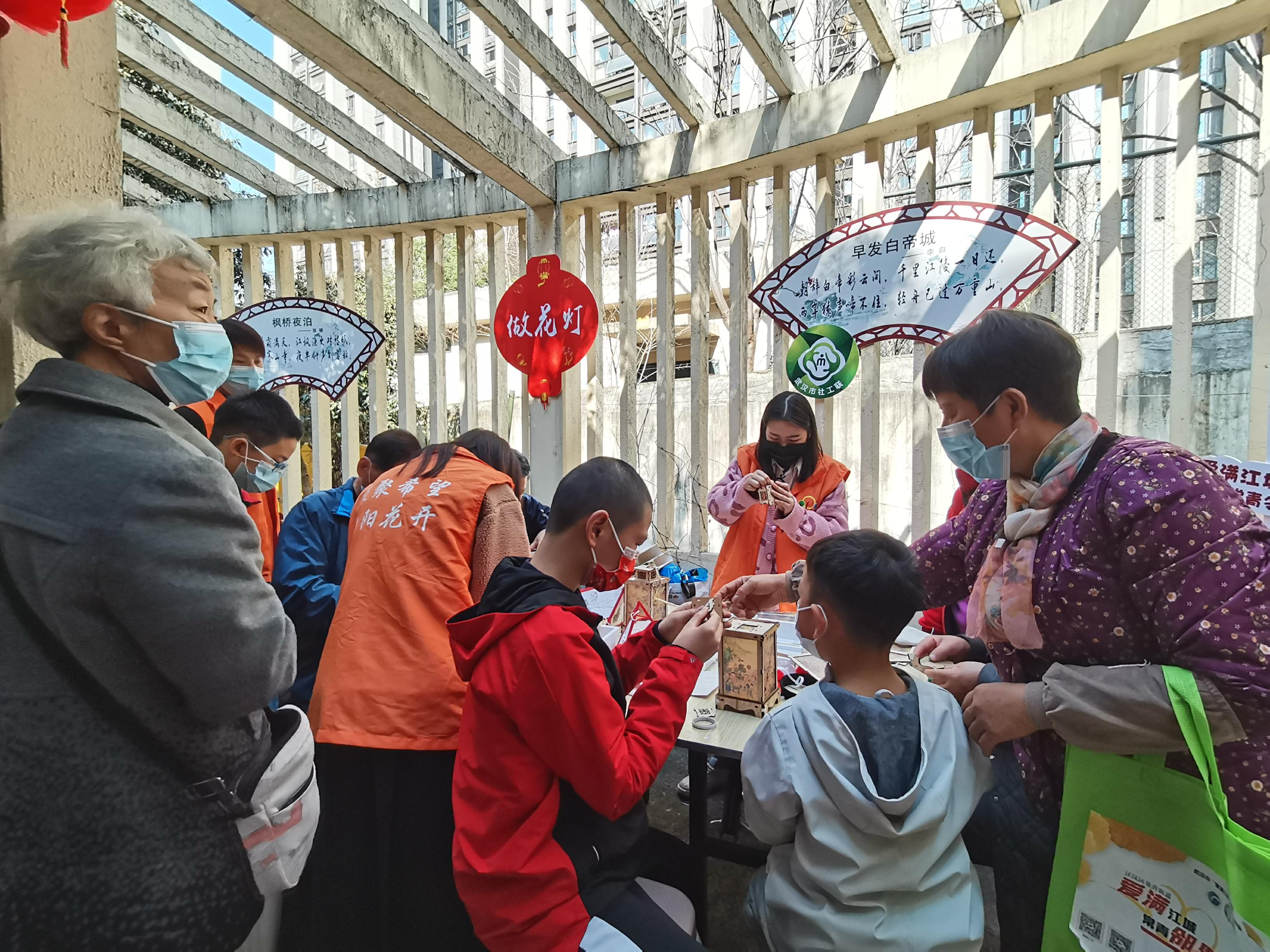 这些妙趣横生的活动中“百子福灯”(做花灯)的制作也吸引着居民踊跃的参与,赏灯是元宵节的传统节目之一,在制作中工作人员一边演示制作的过程,一边向大家介绍“百子福灯”的寓意。在大家的巧手制作下,一个个玲珑可爱的灯笼呈现在大家眼前,拿着自己的“福灯”漫步在园里,好不惬意!