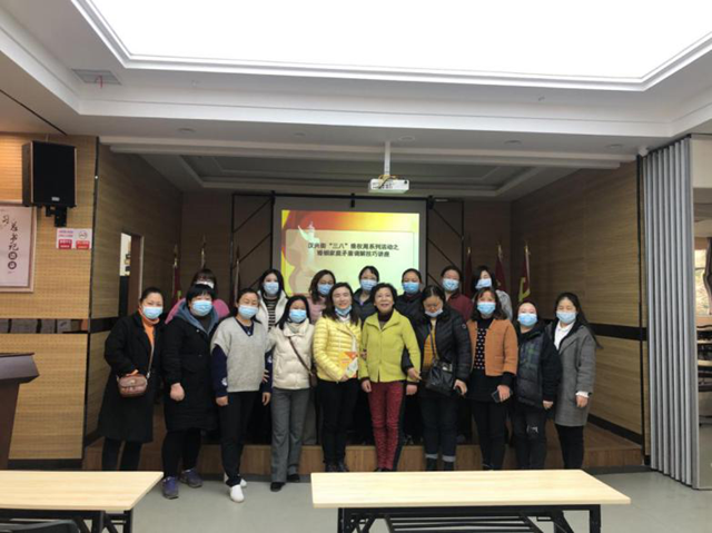 为进一步做好家庭调解工作,提高我街妇联干部调解能力,以”三八”维权周活动为契机,3月4日,汉兴街妇联组织街、社区妇干近20人在杨汊湖社区妇女之家开展了“3.8”婚姻家庭调解技巧培训讲座,全面关爱辖区妇女群众,营造和谐家庭氛围。