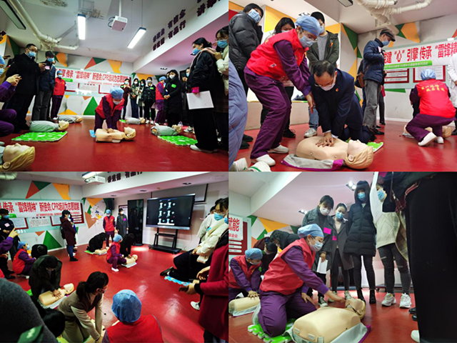 3月3日,在全国学雷锋日的浓厚氛围中,江汉区万松街道武广商圈楼宇综合党委组织开展CPR专项培训暨武广商圈健康志愿服务队成立仪式。特邀同济医院急诊科医护人员和社工部的医务社工,为楼宇企业、物业公司员工以及社区工作者进行CPR培训。