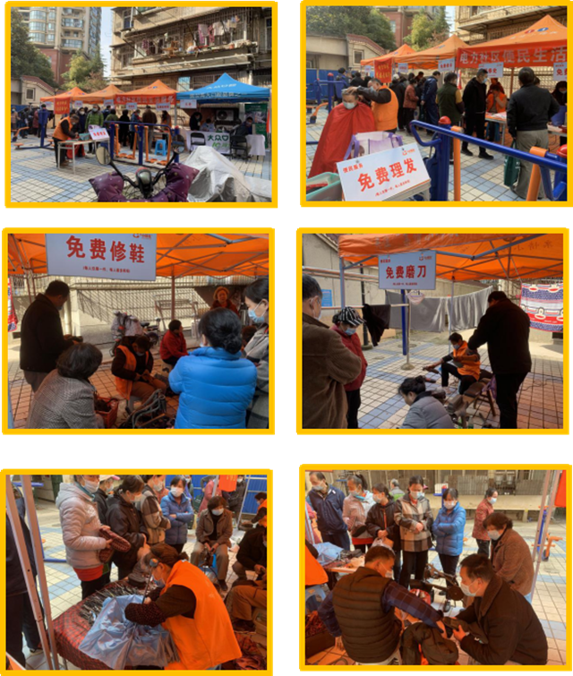 活动现场,志愿服务队为居民量血压、测血糖、按摩、义务理发、修理电器、磨刀、配钥匙、修伞、修鞋,并提供健康和法律咨询等,凌云集团青年志愿者代表在社区工作人员的陪同下走访看望了7户高龄空巢老人,陪他们聊天,并送去了米、油、鸡蛋等慰问物资。