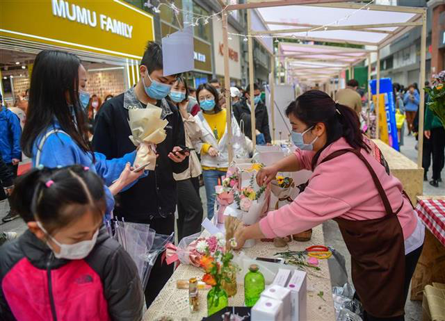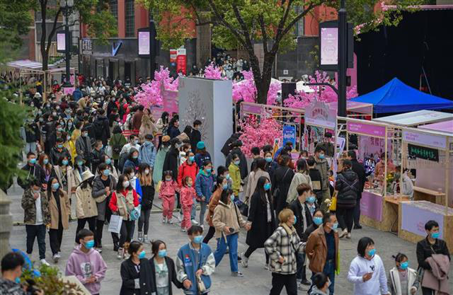 由武汉市文化和旅游局、共青团武汉市委、武汉市江汉区人民政府、武汉市万科房地产有限公司主办的2021“花Young武汉”樱·舞文创市集在江汉路步行街(工商银行大楼至怡廉里时光博物馆约250米的街道两侧)热闹登场。