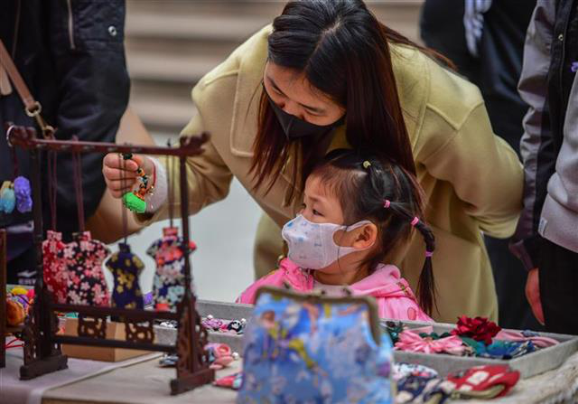 皮影戏摊位上,用牛皮为原材料制作的皮影人物吸引了大家的驻足,沙僧、穆桂英...栩栩如生的中国古典文学人物皮影戏也让不少市民驻足购买,“今天我们定价很低,所以买的人很多,之后我们还将根据年轻人的喜好,制作例如卡通、游戏人物等皮影供大家选择。”摊位负责人王晚晴说道。