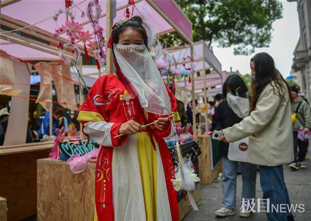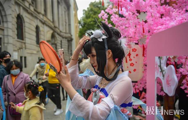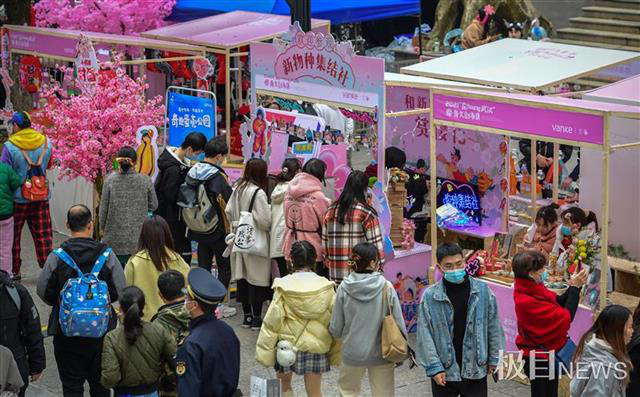 此外,现场还有巨型扭蛋机、樱花主题沉浸式光影空间和各种隐藏玩法也吸引了大量市民体验,汉服巡游和街头音乐会也增加了市集的惊喜感。