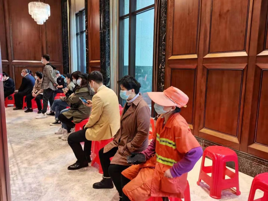 中城悦城接种点接种人员有序排队