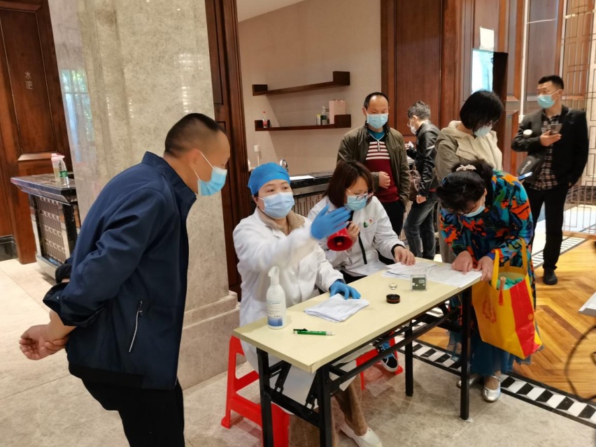接种现场设置问询处,“志愿者+医务人员”耐心解答。为保证疫苗接种工作有序推进,接种点设置排队、初筛、登记、接种、留观五大区域,每个区域放置板凳、矿泉水等物品,志愿者组织居民有序排队等待。通过在排队区测温、健康问诊等一系列流程,经过测血压、信息登记,接种核查、签署疫苗使用知情同意书和注射等流程,留观30分钟后领取接种单则完成本次疫苗接种。