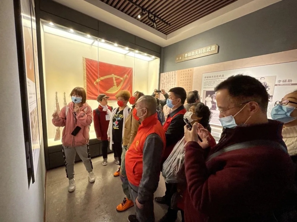 随后到达江夏革命烈士纪念馆,李书记带领大家又重温了入党誓词。紧接着,党员同志们跟着解说员的脚步,踏上了革命先辈的“历史道路”!