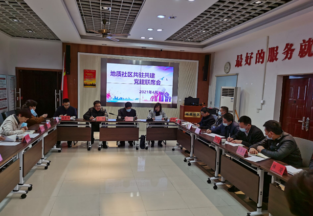 4月7日, 地质社区召开了2021年一季度党建联席会。湖北省地质局党委委员、副局长李华、万松街工委副书记、办事处主任王刚、江汉融媒体中心支部书记汪汉莉、农工党武汉市委会以及省地质局后勤服务中心、省地质局培训中心、省地质实验测试中心党支部领导班子成员、万松派出所民警等15人参加了本次会议。
