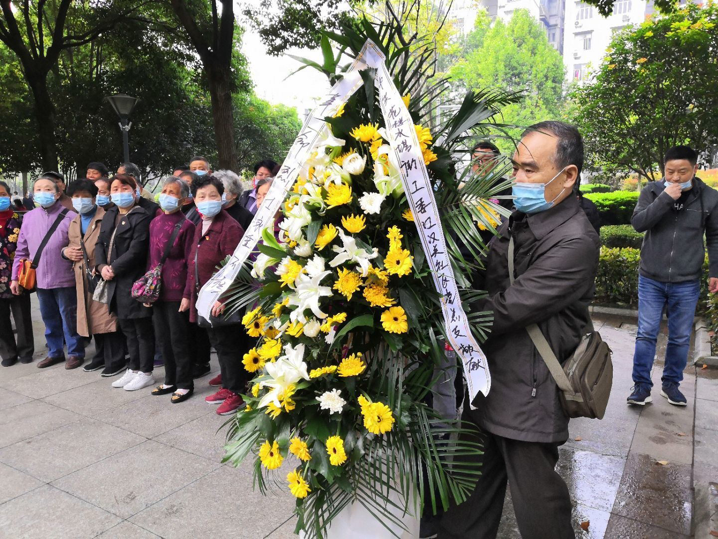在第一届中央监察委员会成员石像前,全体党员向为革命事业英勇献身的烈士敬献花圈,鞠躬致敬,表达对革命先烈的崇敬和缅怀之情。
