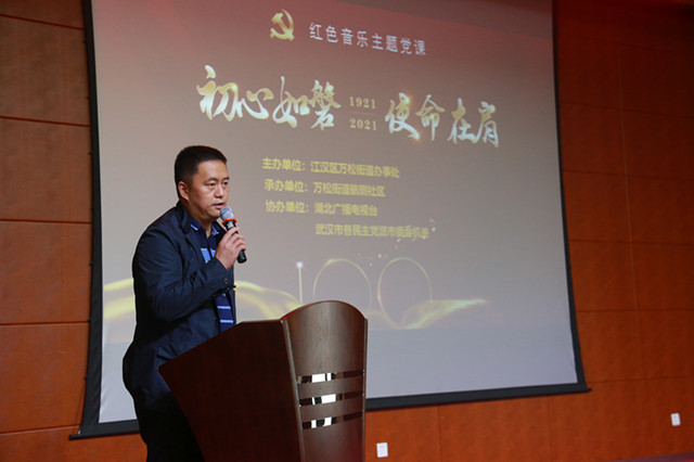 这堂红色音乐主题党课,是社区与辖区单位湖北广播电视台共同推出的党史学习教育专题课。通过《国际歌》《国民革命歌》《十送红军》《游击队歌》《解放区的天》《歌唱祖国》《让我们荡起双桨》《唱支山歌给党听》《在希望的田野上》《春天的故事》《不忘初心》《没有共产党就没有新中国》等镌刻着时代标记的歌曲,串起了100年来中华民族在中国共产党领导下谋幸福、谋复兴的奋斗史。