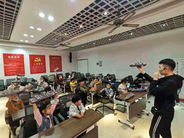活动伊始,武昌区南湖航空科技馆付老师带领地质社区小朋友们观看中国战舰发展史及为研发战舰作出牺牲、贡献的匠人们。随后付老师为小朋友讲解中国战舰——“辽宁舰”、“山东舰”,通过图文及视频,介绍爱国海军将领邓世昌等爱国主义事迹。小朋友们凝望着“辽宁舰”、“山东舰”执行任务照片及军事演练影像,心中充满着自豪感,他们深切地懂得是英雄先辈不懈奋斗,开拓创新,艰苦奋斗的可贵精神成就了现在幸福安康的生活。