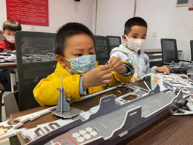 回顾中国战舰发展历史后,付老师及社区志愿者老师,组织青少年们一起制作“中国战舰—兰州号”模型,在动手制作过程中,感受革命英雄艰苦奋斗成立了新中国,增强青少年信心、爱国精神。