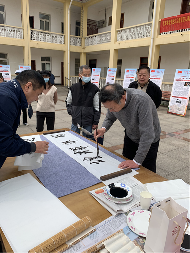 为了讲活历史故事、搞活教育形式,生动鲜活地开展党史学习教育,推动党史学习教育深入群众、深入基层、深入人心,妙墩社区党委响应市、区、街道党工委号召,坚持每日在微信群中转发建党100年来的重要历史事件,并别出心裁地制作了X型展架,让活动现场的书法,绘画爱好者纷纷拿起毛笔,挥毫泼墨,诗词作画,抒发自己对党,对祖国的热爱和美好祝福。