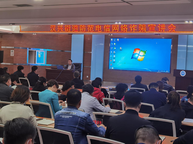 为有效预防网络电信诈骗等新型违法犯罪,增强街道、社区反电诈意识,4月15日晚,汉兴街道在机关五楼会议室召开防范电信网络诈骗宣讲会,并部署在全街开展“全民反诈、汉兴无诈”创建工作,街道全体党政领导、机关干部、社区书记和综治主任以及辖区三个派出所有关负责同志参加。