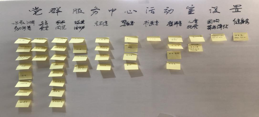 在暖场活动后,社区书记徐莉阐述了“把决定权和行动权交给居民”、“严肃事情轻松做,复杂事情简单做”、“没有对错,只有不同”等理念,把居民们快速带入了群策群力、共治共享的讨论氛围。按照开放空间工作法的规则,居民们分组讨论,你说我听,我说你想,依次发言,做好记录,桌长、记录员、计时员各尽其责,将每个人的想法通过卡片收集汇总,形成41条11个类别的建议,最终以多功能活动室为下一步打造思路。通过开放空间卡片式工作法,让居民群众参与到社区事务之中,用极高的效率从居民中收集了大量可行性建议,并现场精炼成为居民的共识,为社区下一步打造全新党群服务中心提供了全新思路。本次活动推行了先进治理方式,社区因地制宜简化流程,变成更加适用于现代化居民小区快节奏生活的社区特色项目“悦悦谈”,今后社区将会继续深化打造“悦”系列特色项目,让小区居民愉悦议事、共谋发展,助推小区治理更上一个层次。