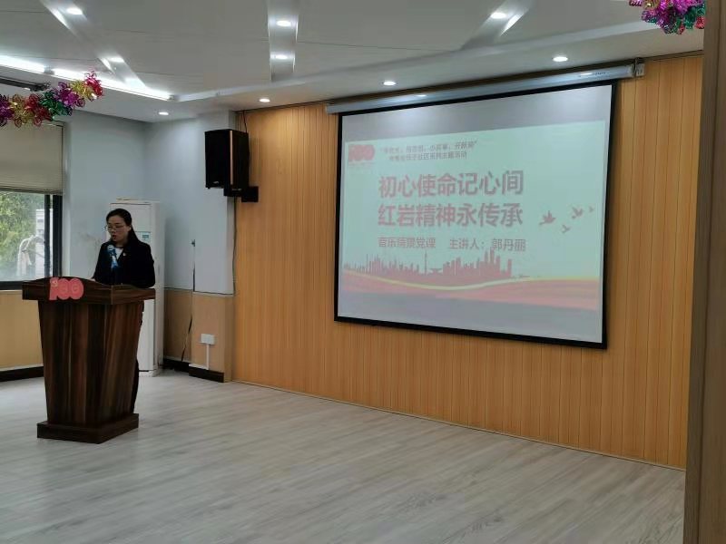 讲党课,重温峥嵘岁月。社区党委书记郭丹丽以江姐的人物形象开启本次情景党课,通过讲述共产党员江姐在得知新中国成立的消息后,与狱友一起连夜绣制五星红旗的场景,深入分析《绣红旗》背后的故事,缅怀了以江姐为代表的无数革命先烈为新中国建立的不朽功勋。从江姐身上,让我们看到了刚柔相济,锲而不舍的政治智慧;看到了“出淤泥不染,同流不合污”的政治品格;看到了以诚相待,团结多数的宽广胸怀;看到了善处逆境,宁难不苟的英雄气概,完好的呈现了红岩精神的真谛。红岩精神是革命先烈对真理的坚持,是革命先辈为国家为人民无私奉献的真实写照,更是改革开放发展建设过程中不可缺少的一种精神支柱。同时也让党员们深刻领悟到今天的和平幸福来之不易,先烈们崇高的民族气节与革命精神令人敬佩。