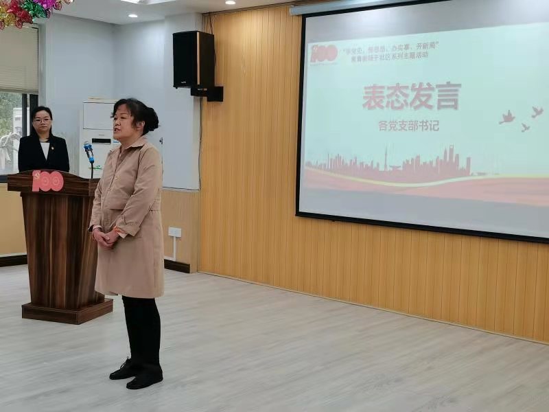 随后,各小区支部书记还做了表态发言,表示:“通过党史学习,更加坚定不忘初心、牢记使命,永远跟党走的决心。作为新时代的老党员,一定要以忠诚、担当的实际行动,继续发挥余热,为扬子社区的发展出谋划策,贡献力量。”
