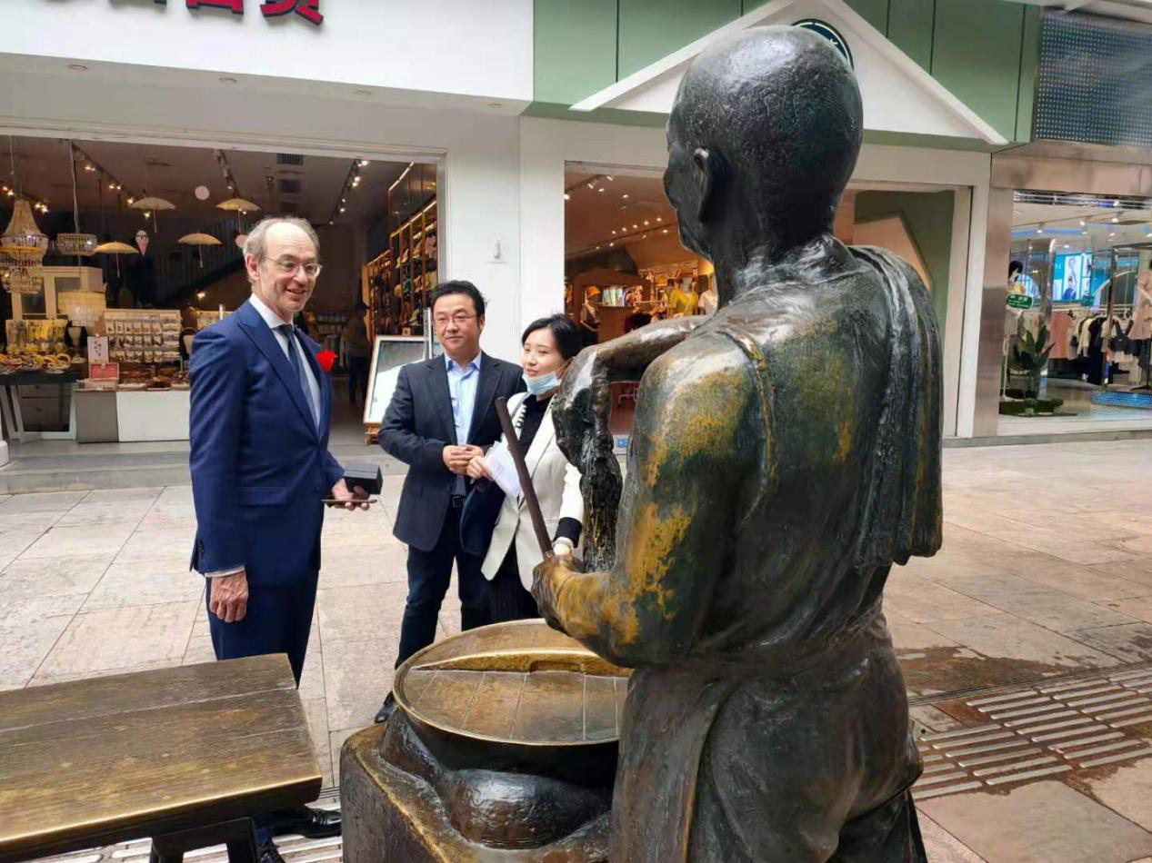 仪式结束后,俞博生大使还饶有兴趣的参观了江汉路步行街,参观了三联书店和江汉关博物馆,近距离感受中华文化,更进一步认识了解武汉。