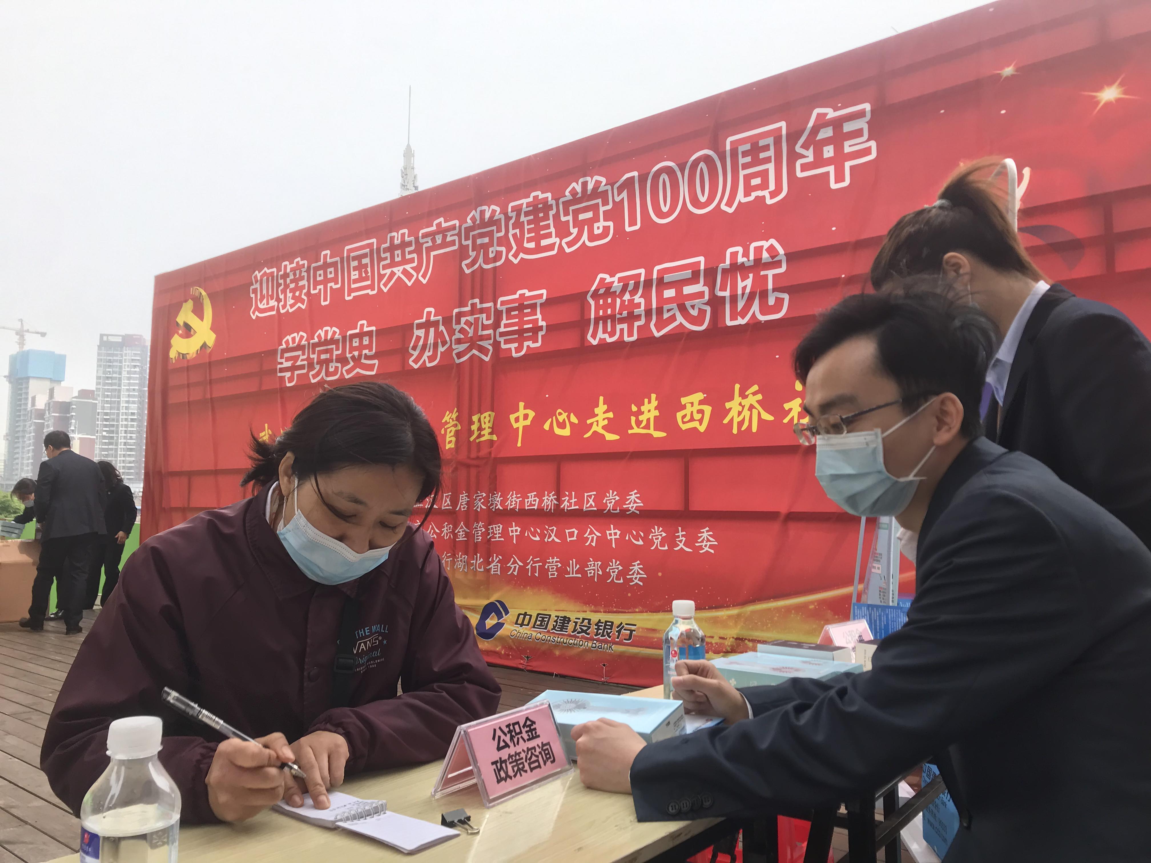 学党史、办实事、解民忧。活动现场,共建单位武汉住房公积金管理中心汉口分中心携手中国建设银行股份有限公司湖北省分行营业部,各自做表态发言:用“走出去、主动办”的方针,贯彻落实“学史明理、学史增信、学史崇德、学史力行”把方便送进小区,把惠民服务办到心坎。