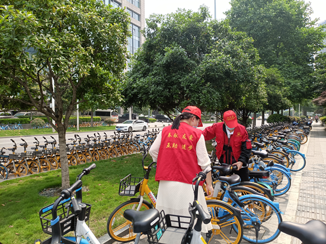 在五四精神的感召下,社区工作人员和志愿者在观展结束后主动分成三组,一组去到社区空巢老人的家中,为老人们送去温暖与关爱,聆听老人们回忆党的百年征程;另外两组开展整理辖区内共享单车,捡路面烟头等公益行动,用实际行动践行五四精神、传承五四薪火,争做时代青年先锋。