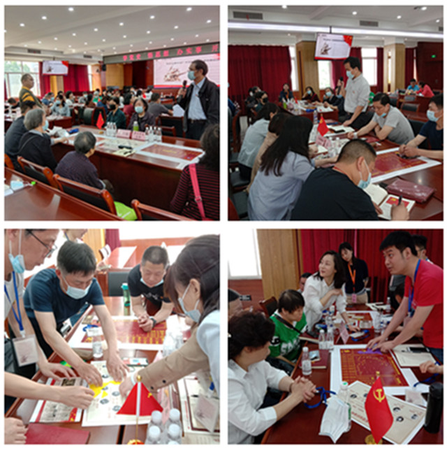 参训学员按支部片区分为六个小组完成课堂任务。他们认真听课,积极思考,踊跃发言,与讲师探讨长征路上各重大战役和重大节点的内容与启发。沙盘演绎环节,六个小组借助地图、角色卡、国旗、任务卡、事件卡、党旗海报等道具,充分发挥各自党史知识储备,情景模拟经典战疫巧渡金沙江、飞夺泸定桥等等长征重大战役,在模拟体验中提炼长征精神、学习长征精神。