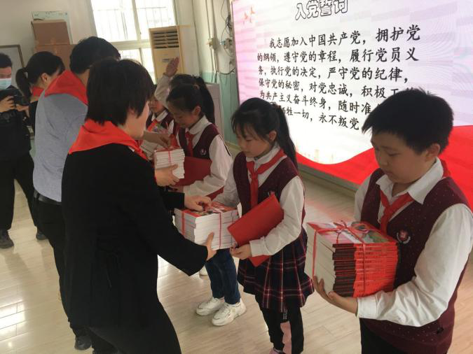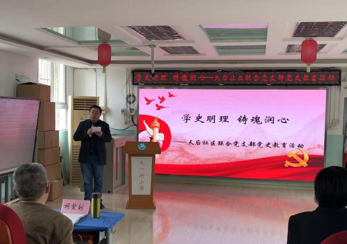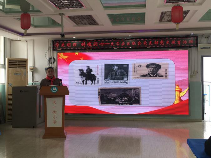11日,江汉区民意街天后社区携手区国资局及天一街小学全体党员及四年级师生,走进天一街小学的校园,开展“学史明理、 铸魂润心” 党史学习教育。本次活动以丰富的学习内容、多样的学习形式,引导广大党员、师生充分认识到党史学习教育的重大意义。天一街小学四年级的少先队员为来宾戴上了鲜红的红领巾,并深情地朗诵诗歌《党啊,亲爱的母亲》;区国资局的党员代表为学校学生赠送党史故事书籍并寄予希望;武汉市教科院教研室史地教研员柯贤利同志讲授党课《光辉的历史——庆祝中国共产党成立100周年》。柯贤利老师是八十年代入党的老党员,年近八旬,但仍然满怀激 情,从他精心搜集的邮票中精选一百多张,反映从五四运动到2020年抗疫胜利、全面脱贫成就的一百年党的革命和建设史,这里面包括最重大的事件,如党组织诞生、长征、抗日战争和三大战役、新中国成立、改革开放和国家建设发展中在科技文化等各领域最突出的成就。此次活动给天一街小学师生留下了深刻的印象,起到学史于有形、润物于无声的效果,在同学们的心中播下红色的种子;对于全体党员而言,也更加坚定了他们的信仰信念,以史为镜、以史明志,激发全体党员接过新时代的接力棒,走好新时代长征路,为百年党史写下动人心魄的新篇章!