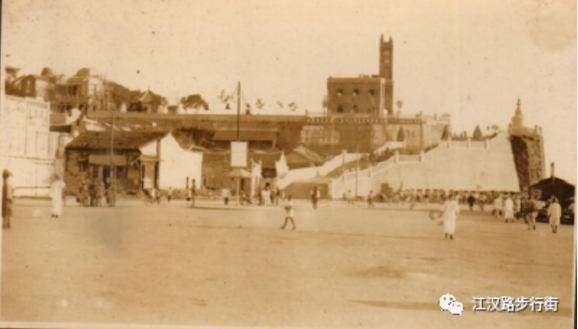 1、1924年1月21日建成的江汉关大楼,正对沿江大道。照片右侧为怡和洋行大楼。江汉关大楼现为全国重点文物保护单位。