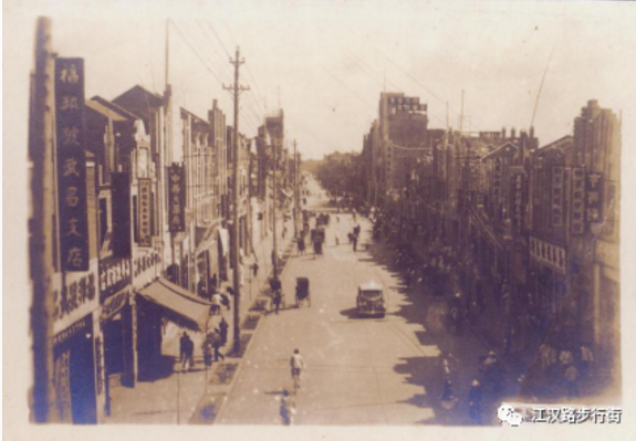 18.1927年至1937年间,汉口市政发展进入高潮。原汉口后城马路更名为中山路,成为“模范马路”。图为汉口中山路,背后为汉口水塔。