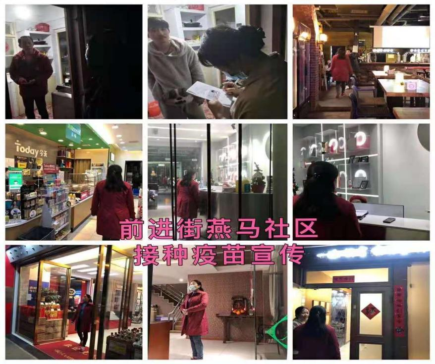前进街道燕马社区积极响疫苗接种工作部署要求,统一认识、明确目标,启动三级管理责任制即社区第一负责人--片区负责人--督导专员确保疫苗“应接尽接”,参考人口普查大数据再次摸清家底,提升精准对接服务,做到心中有数、心中有底。通过丰富宣传形式,充分宣传疫苗接种的必要性、安全性、注意事项等相关知识,消除居民对疫苗接种的疑虑和误解,积极有序推进新冠肺炎疫苗接种工作。