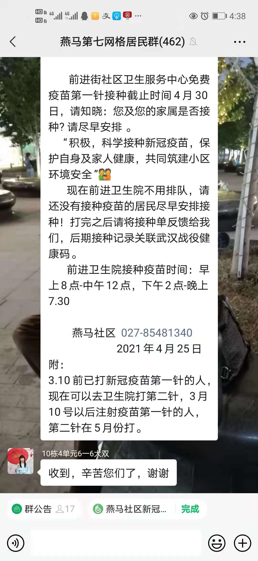 “群众的心理群众最懂,群众的话群众最能听得进。”燕马社区通过线上平台——社区微邻里、网格微信群、朋友圈、电话问询,到线下的社区岗亭宣传“小喇叭”、横幅标语、防控告知单,努力消除宣传死角,营造小区居民群众共同维护辖区环境安全的责任意识,提高防护意识,形成早接早受益的健康理念,积极接种疫苗。