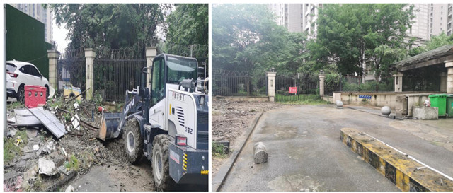 金捷书记现场办公,督促社区工作人员、泛海物业、万松环卫等部门协同联动,现场清运垃圾、铲除杂草、清扫路面,在清理了3大车垃圾后,该地段环境整洁一新。