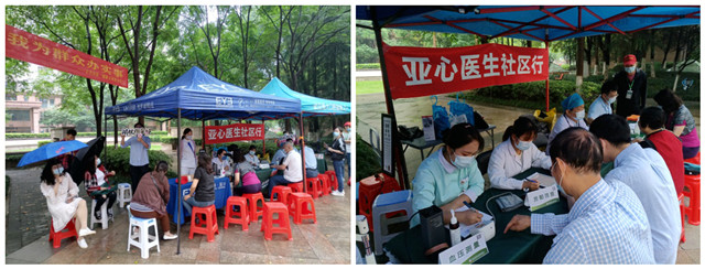 5月23日,天空下着小雨,但一早就已经有居民陆续来到活动现场等候。9点整义诊活动正式开始,大众口腔的医生现场为居民开展口腔检查,爱尔眼科的专家提供电子视力筛查和裂隙灯检查,提出专业化意见。最受居民们青睐的还是亚心医院的义诊专家。家住樱海园的张奶奶说:“平日心脏有点不舒服,家里孩子们工作忙,我都是一个人去亚心检查。人年纪大了,每次坐车都怕搞错方向,到了医院又要排队挂号,太麻烦了。现在好了,亚心的专家到家门口来了,我直接下个楼就可以咨询看病,别提多高兴了。云天社区的干部们真是想了居民之所想,解了居民之所忧哩。”