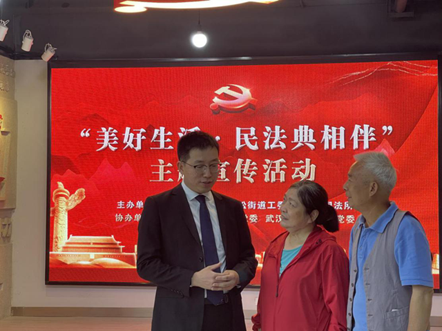 时值《中华人民共和国民法典》颁布一周年,为做好民法典普及宣传,助力社区干部学好用好民法典,进一步增强居民群众法治观念,5月28日,万松街道联合结对共建单位江汉区工商联在电业社区开展“美好生活·民法典相伴”主题宣讲活动,工商联成员单位、万松街道各社区民调委员、居民代表等约60余人参会。