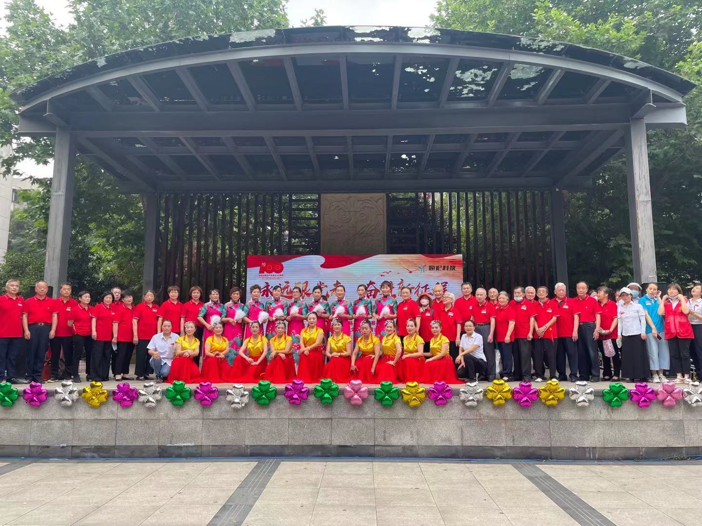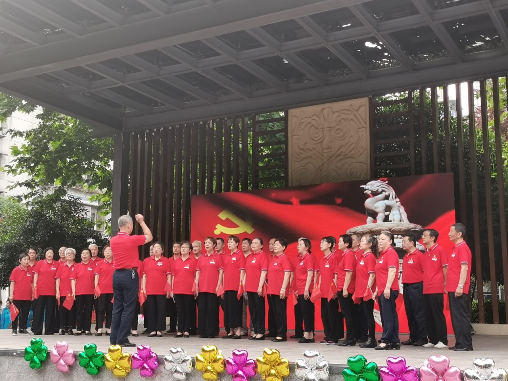 在志愿服务中,扬子社区涌现出一批优秀志愿者,为了促进社会和谐,弘扬“奉献、友爱、互助、进步”的志愿精神,紧接着社区对辖区最美志愿者进行了表彰,呼吁更多的居民加入到志愿者队伍中来,为共同建设美好扬子添砖加瓦;舞蹈《傣族姑娘》热情奔放,快乐的旋律带动着大家一起舞动;孩子们是祖国的未来,是民族的希望,由武汉市第三十六中学的同学们带来的歌曲《山河无恙在我胸》和情景剧《红军长征》充满活力和激情,他们跳出了自信、跳出了风采,表达了对伟大的党、伟大祖国的热爱之情;由扬子社区时装走秀队带来的旗袍秀《不忘初心》优雅时尚,为街坊们带来了一场视觉盛宴;在伟大的中国共产党成立100周年到来之际,我们要在中国共产党的旗帜下,继承和发扬革命先烈的遗志,沿着老一辈革命家开创的路程,为实现中华民族伟大复兴的中国梦奋勇前进。一曲由扬子社区党员带来的大合唱《颂歌献给党》铿锵有力,让大家顿时热血沸腾、气势高涨......扬子舞之恋健身队带来的舞蹈《共和国走向未来》让每一个人都感受到作为一名中国人是多么的骄傲;街坊们手中的国旗舞动着,快闪《祖国之恋》将现场氛围推向了高潮。