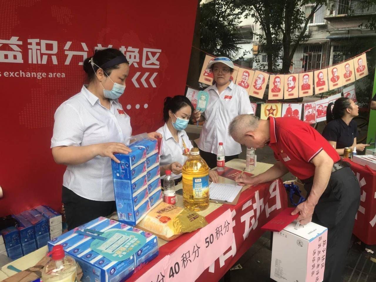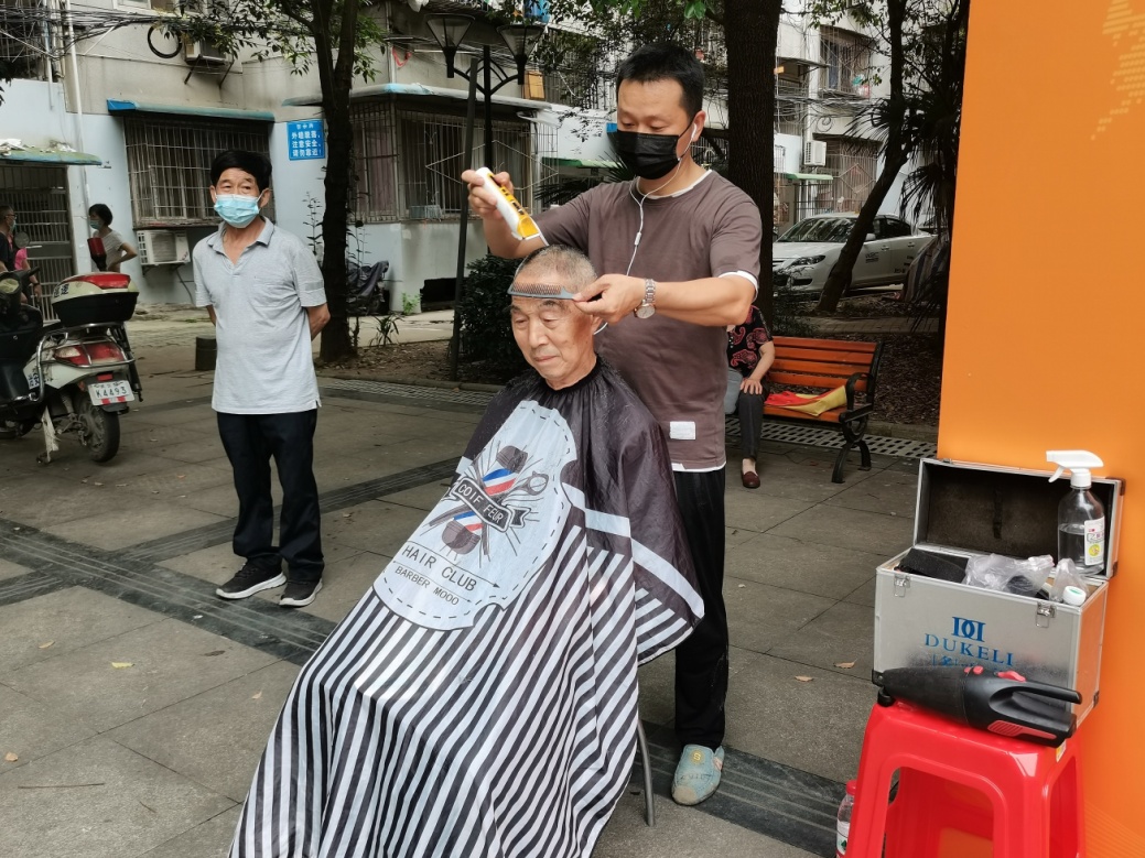 台上精彩纷呈,台下热闹非凡。为了实现便民“零距离”,服务“有温度”,台下规划出义诊服务区、便民服务区、老年人服务咨询区、文创产品展示区以及志愿者积分兑换区五类服务展区。天气虽然炎热,但广场上的街坊们热情满满,下午5点整,理发、家政服务、家电维修、义诊、口腔检查等居民日常需要的服务内容在家门口的广场上整装集结。现场各个项目有序进行,气氛热烈,现场还为小朋友准备了盐蛋网兜,孩子们把鲜艳的网兜戴在脖子上,高兴的又蹦又跳。文创展区展出的精美剪纸作品、绘画作品和扬子街坊报引得广大街坊长久驻足观看,传承了中华民族的丰富文化。