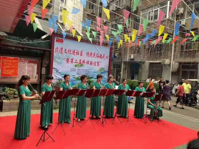 非遗表演,孝老爱亲。永康、老甫社区越剧、京剧、湖北道情等传统表演形式,精彩纷呈。居民积极互动,在非遗冯老师和堆绣班学员的指导下,穿针、修边,折叠,做香囊。孩子们系绳、打结、缠绕、串珠,亲手把做好了的咸蛋兜一个个挂在老年人的脖子上,老少同乐。包粽子活动结束后,社区工作人员和志愿者上门探访辖区内的高龄、空巢老人,送上节日的祝福,让他们感受到社区大家庭的温暖。