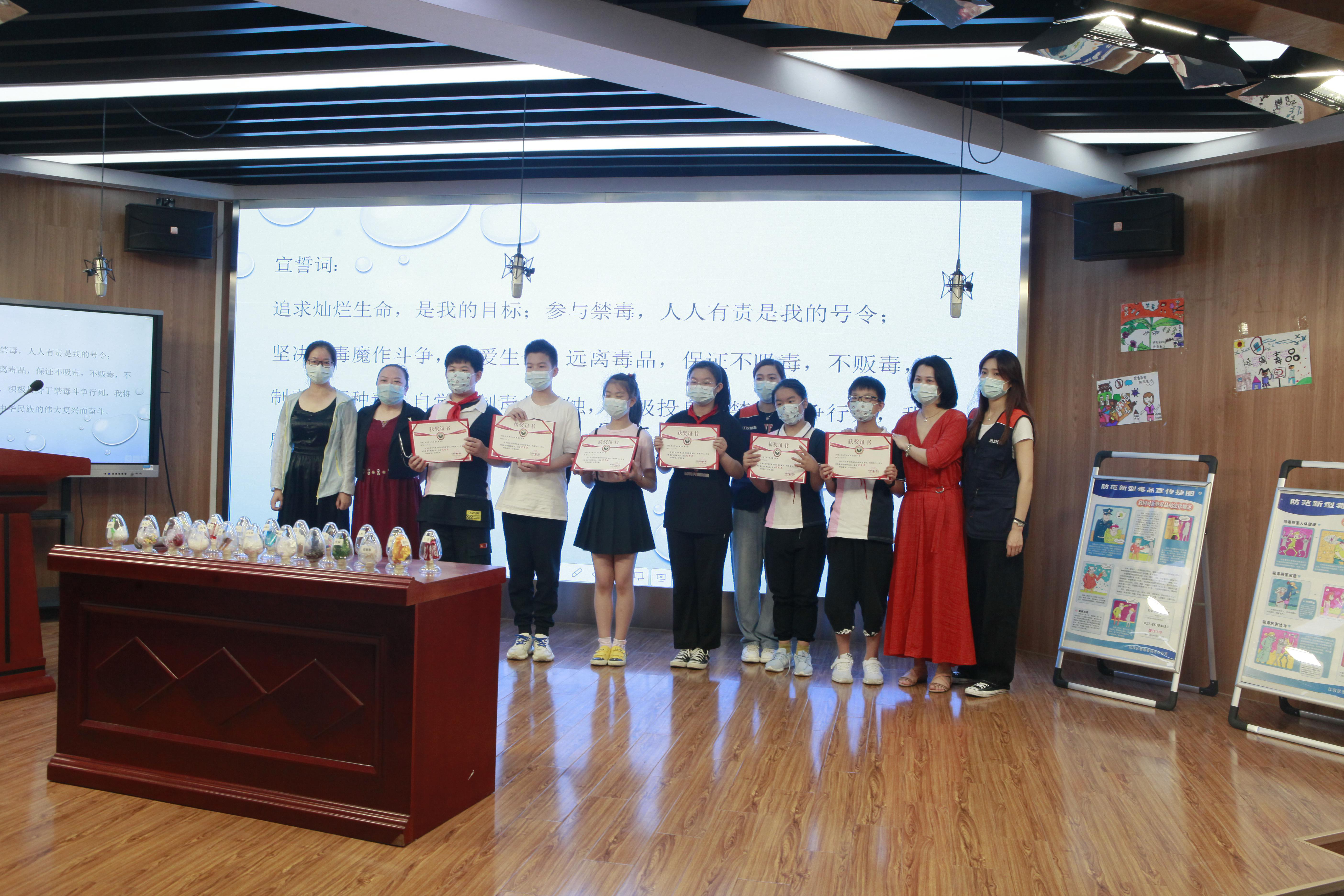 6月8日下午,区妇联、江汉区禁毒办、民意街道妇联主席、民意街道公共安全办、全体禁毒社工在惠康里小学开展“江汉区“平安关爱、拒绝毒品”禁毒知识宣传讲座。禁毒社工播放毒品危害视频、讲解法律法规学习及禁毒知识、组织同学们问卷答题及毒品知识有奖问答、发放禁毒宣传册、带领同学们宣誓✊、颁发禁毒荣誉证书等形式都是为了向同学们介绍毒品的常识、毒品的危害、如何去防范毒品侵害等知识,警惕同学们要珍惜自己美好青春年华,选择健康的娱乐活动和生活方式。通过系列性的禁毒宣传进校园活动,让同学们随时能够了解XXDP的特点及危害,增强了同学们对毒品辨识能力,越来越多的学生对毒品的种类和危害,以及防毒拒毒方法具备了更为清晰的了解和认知。