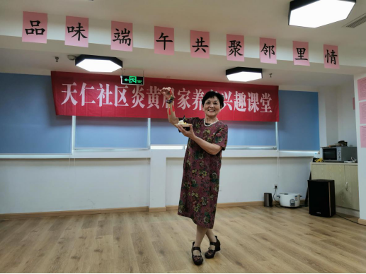 6月9日上午,民意街天仁社区联合炎黄居家养老服务中心开展了“品味端午,共聚邻里情”温情端午节主题活动。包粽子比赛、集体生日(6月过生日的社区老人们欢聚一堂,精心准备了丰富多彩的文艺节目)、优美的舞蹈、动听的歌曲博得了老人们的欢笑和掌声,同时,社区志愿者们上门看望了小区内的独居空巢老人,送上了粽子、咸蛋和小香囊。