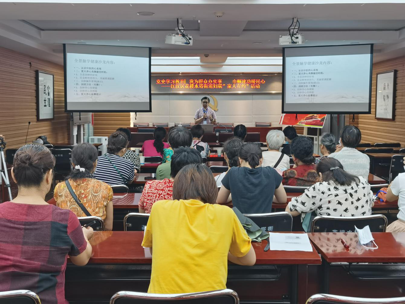 为丰富居民生活、提升群众的幸福感,以居民需求为导向,开展党史学习教育“我为群众办实事”实践活动,近日花楼水塔街道妇联在街道工委领导下,开展我为姐妹办实事巾帼建功暖民心——江汉区花楼水塔街道妇联“家人有约”活动,带领辖区内居民共同学习头部刮痧技能,用感受得到的温度换取大家的满意度。
