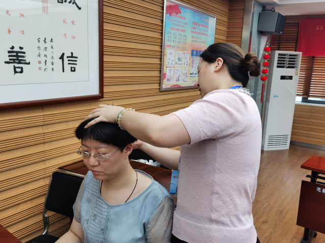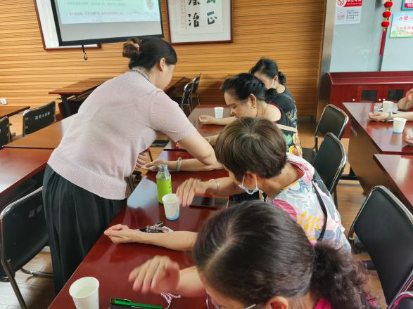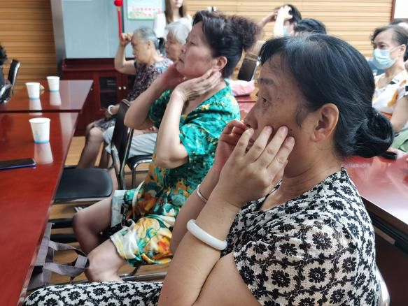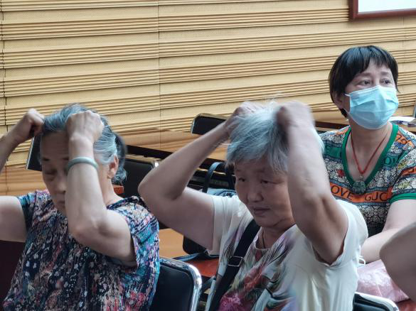 大家基本学会了之后都热情高涨,开始不断地自己练习活络头部经络、刮拭头皮及后脖颈、拍打肘窝,体验中医术的妙用。并表示回家后要讲今天所学会的知识与方法都教给家人,一起变得更健康。