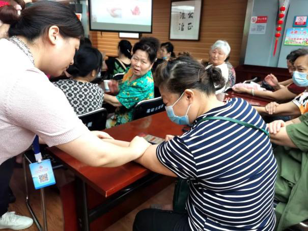贺老师在活动中全程手把手地指导居民一起拍肘窝,一个个地纠正角度与力度。肘窝是心经和心包经的经过处,因此经常拍打可化瘀补虚,会让心脏越来越年轻。