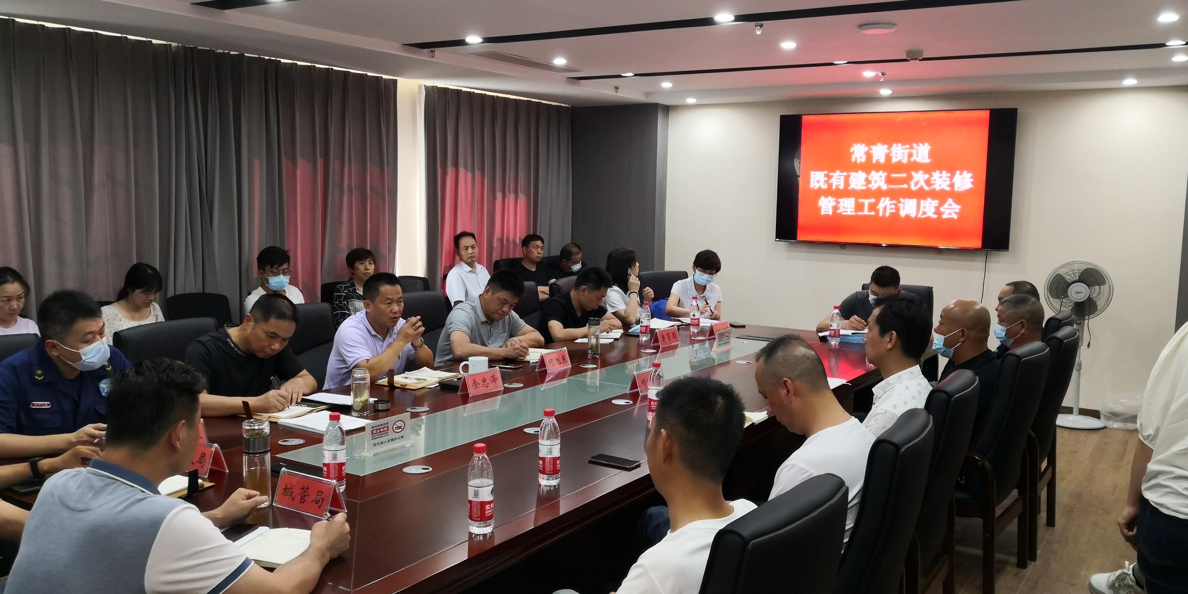 7月26日下午,常青街道召开既有建筑二次装修管理工作调度会。会议传达学习习近平总书记重要指示批示精神,贯彻落实区安全工作会议重要指示精神,深刻汲取江苏苏州7.12坍塌等近期多起房屋建筑安全事故教训,部署全面开展房屋建筑安全隐患排查整治,建立健全既有建筑安全管理常态长效机制。会议由街道办事处主任余忠泽主持,区相关职能部门、街道班子成员、科室负责人、社区书记、六家二次装修违规项目负责人等40余人参会。