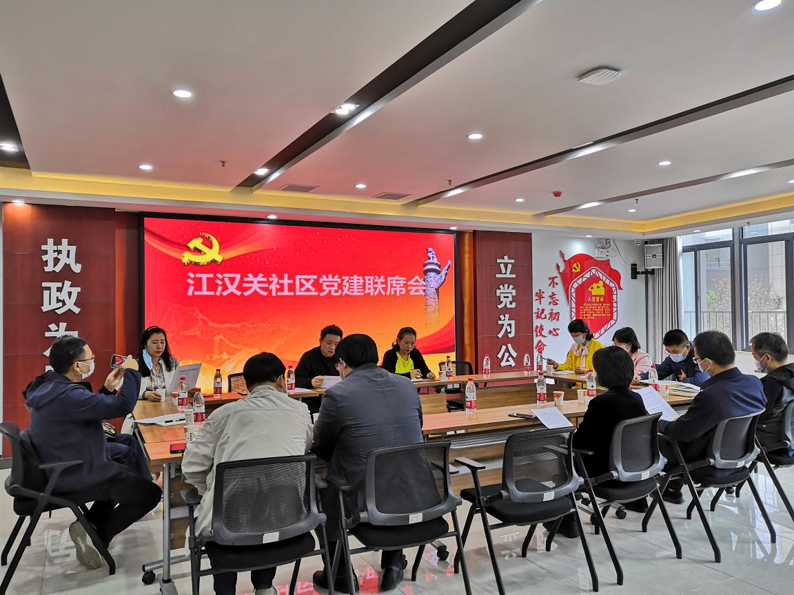 为深入推进党建引领小区治理,着力提升小区治理精细化水平,切实发挥社区大党委堡垒作用,充分发挥机关企事业单位党员干部政策水平高、纪律意识强等特点。2021年10月13日下午3点花楼水塔街道江汉关社区组织省盐业公司、市文化和旅游局、江汉关博物馆、教育局基仪站党支部、国创资本党支部、教育局资助中心党支部、教育局核算中心党支部、武汉关小学党支部、市华侨联合会、世纪江尚佳丽物业等11家大党委成员单位召开党建联席会议。探讨全年“区域化党建”下沉支部联系社区“三张清单”完成情况,商定下沉党支部参与“两委”换届工作具体细节。