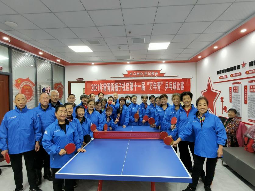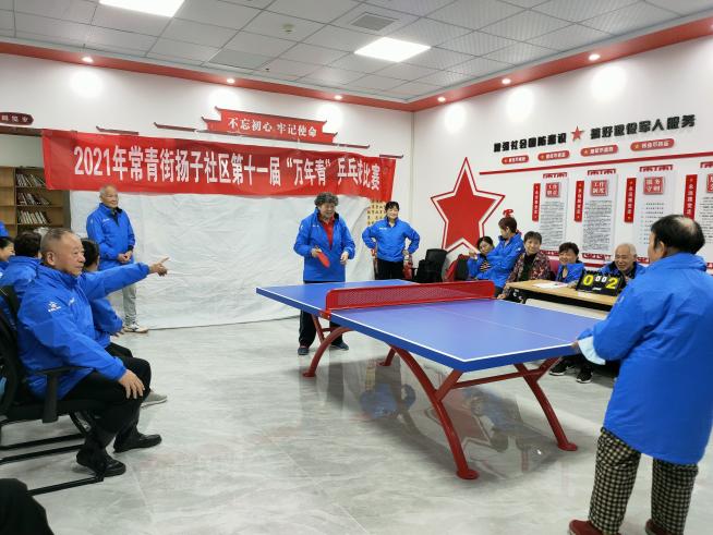 在这秋风送爽,桂丹飘香的季节,为弘扬体育精神,提高居民参与体育活动的积极性,丰富辖区居民的体育文化生活,常青街扬子社区在区、街领导的大力支持下,于2021年10月16日组织开展了第十一届 “万年青” 乒乓球俱乐部比赛。
