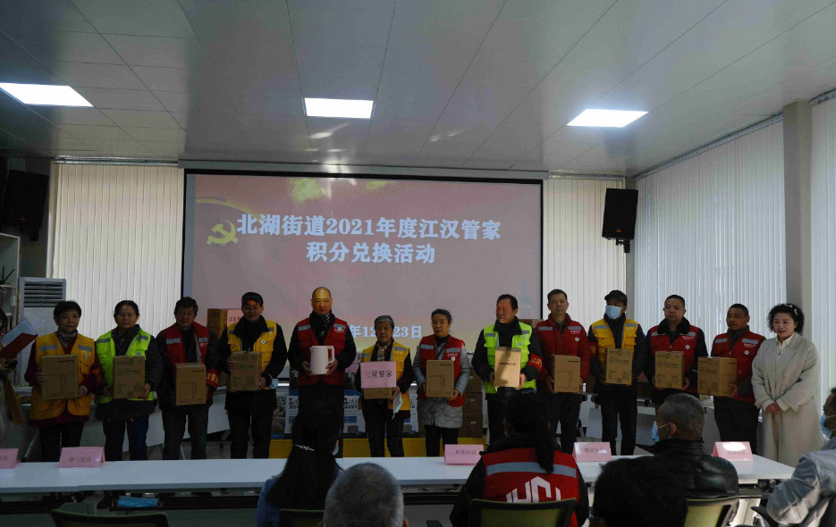 2021年12月23日上午,北湖街针对“江汉管家”的大爱无私服务,开展2020年度北湖街“江汉管家”积分兑换活动,对69名“江汉管家”进行积分兑换活动。